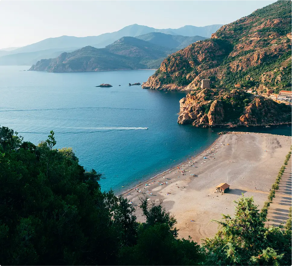 Omringd door pijnbomen en met een langzaam aflopende kustlijn is Palombaggia perfect voor gezinnen, maar ook voor rustzoekers. Het heldere water is ideaal om te snorkelen en de baai voelt dankzij de beschutte ligging vaak kalm en vredig aan. Neem de tijd om hier te ontspannen en te genieten van het uitzicht op de Cerbicales-eilanden in de verte.